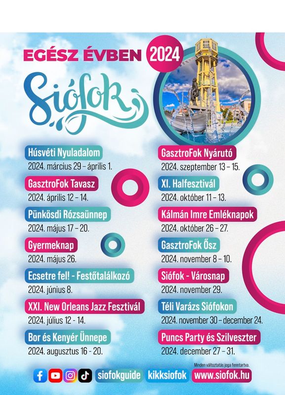 Érdemes egész évben Siófokra látogatni, hiszen ne feledjétek: Itt kezdődik a Balaton! A Balaton egyik fővárosa Siófok, ahol egész évben gazdag a programkínálat, éjjel-nappal zajlik itt az élet.